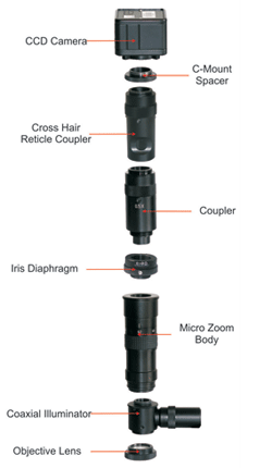 The zoom body system of MZ Video Zoom Microscope is designed by using four pieces